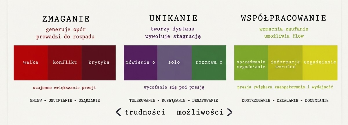 - 9 pustych kart – z miejscem na wpisanie własnych komunikatów, aspektów, najczęstrzych zachowań w danej organizacji