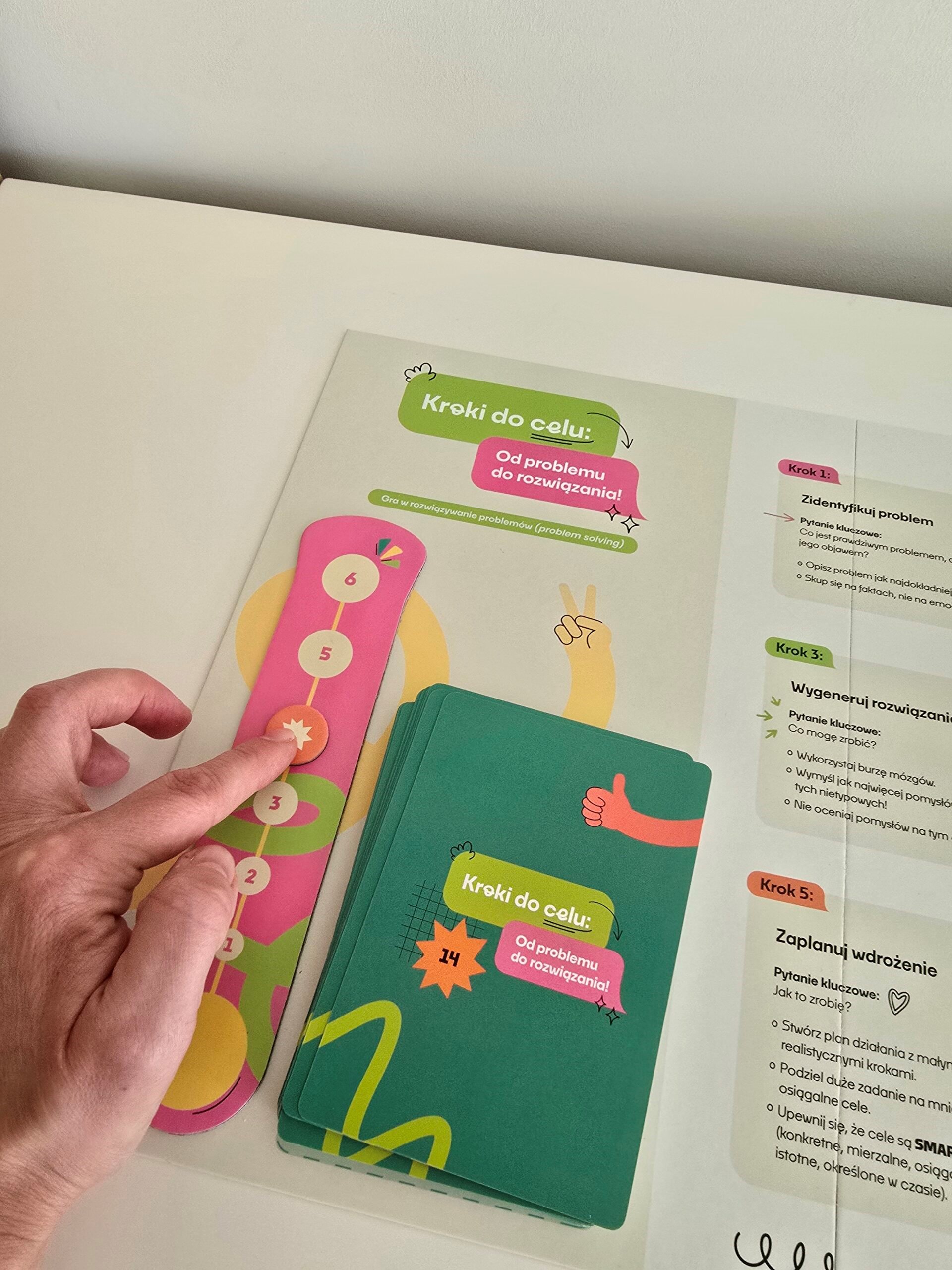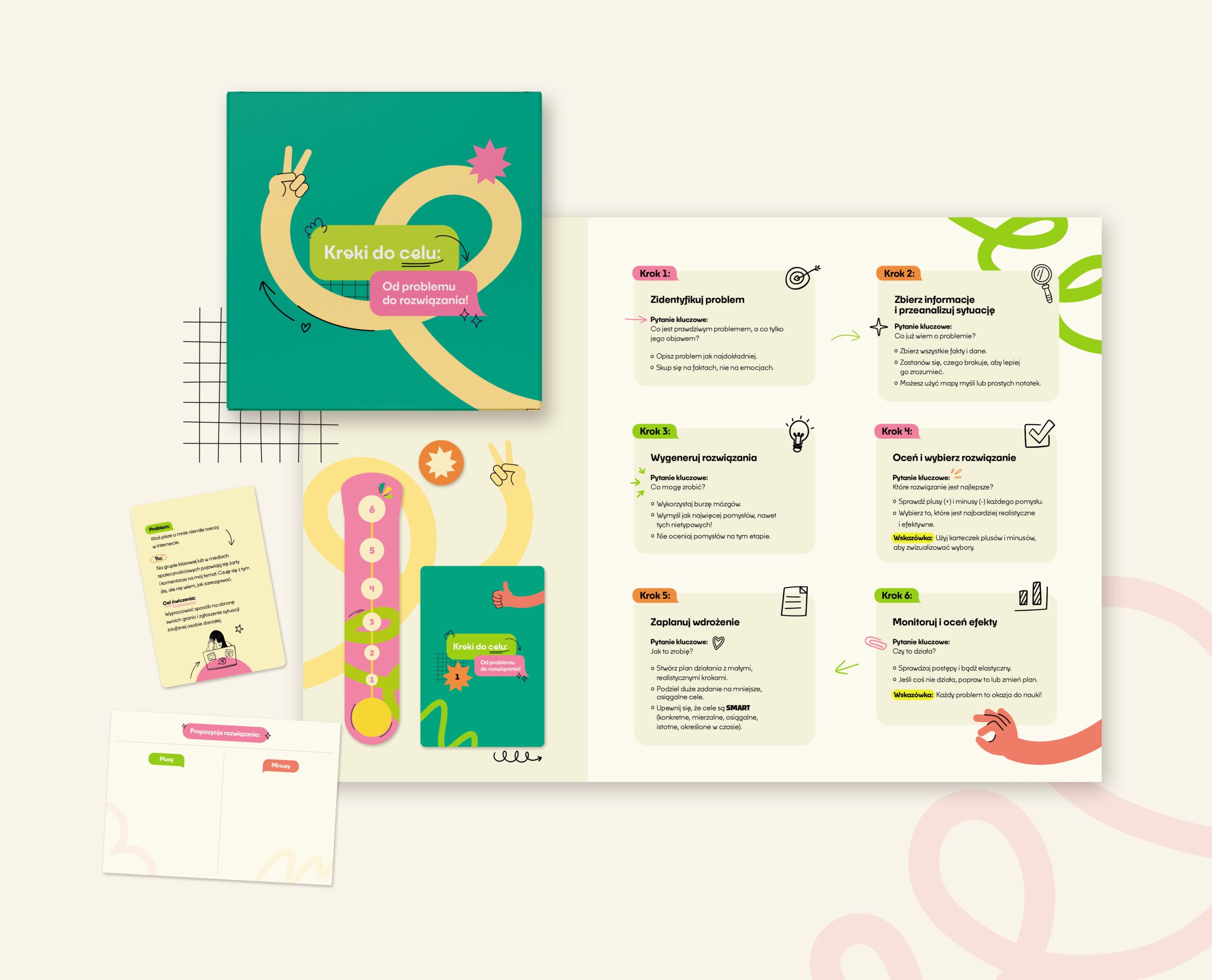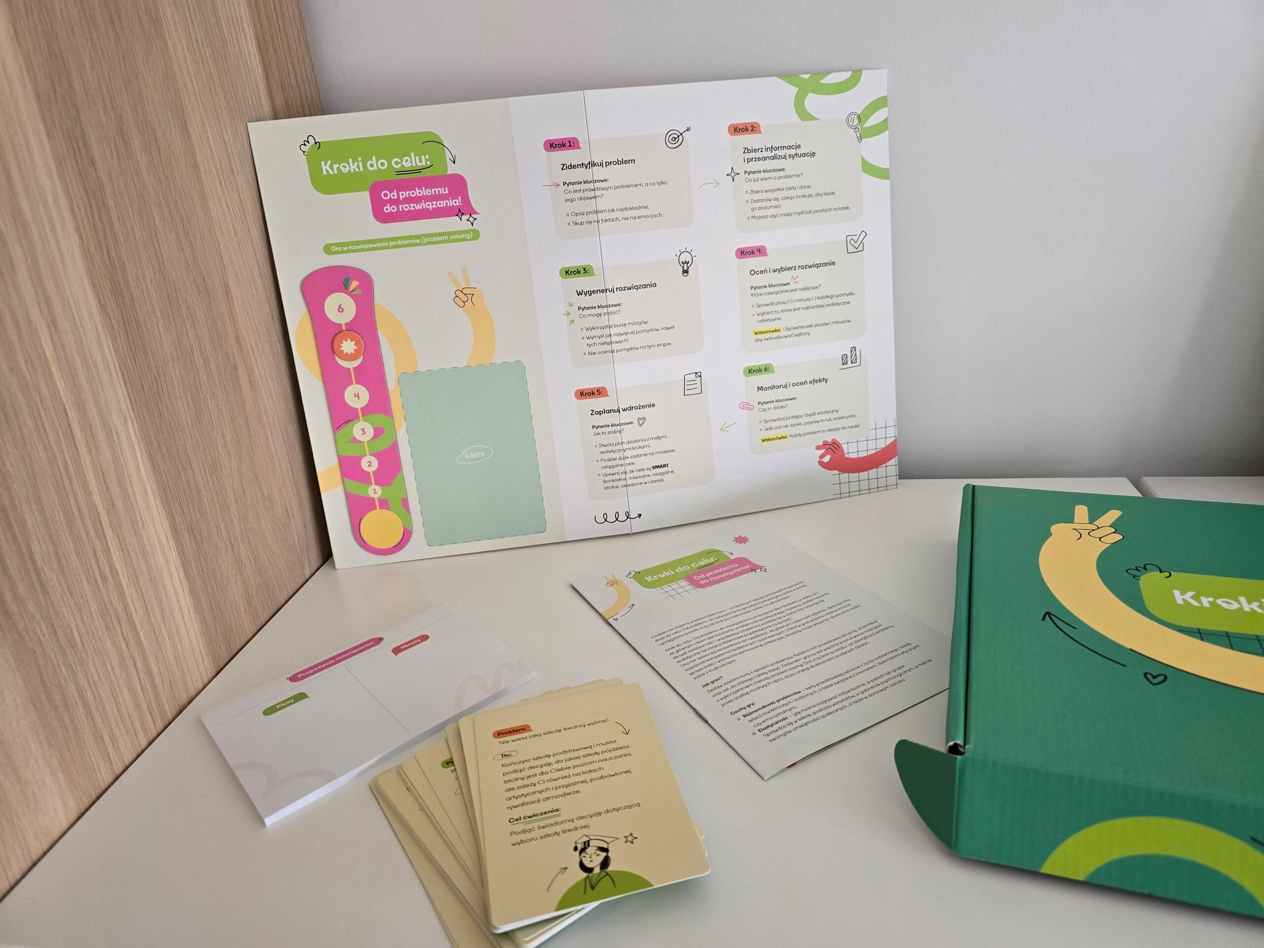 - Plansza psychoedukacyjna: Czytelny przewodnik po 6 krokach metody rozwiązywania problemów.