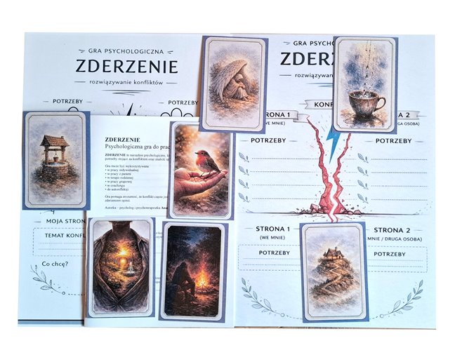 Zderzenie to narzędzie psychologiczne do pracy z konfliktami, które pomaga dostrzec prawdziwe potrzeby stojące za napiętą sytuacją oraz znaleźć sposoby ich zaspokojenia. Gra może być wykorzystywana w pracy zarówno z konfliktami interpersonalnymi, jak i wewnętrznymi.Praca może dotyczyć każdego rodzaju konfliktu: w pracy, z partnerem/ą, w rodzinie.Celam pracy z tym narzędziem nie jest rozstrzygnięcie kto ma rację, celem jest zrozumienie natury konfliktu, rozpoznanie potrzeb, które za nim stoją i znalezienie sposobów na ich zaspokojenie.